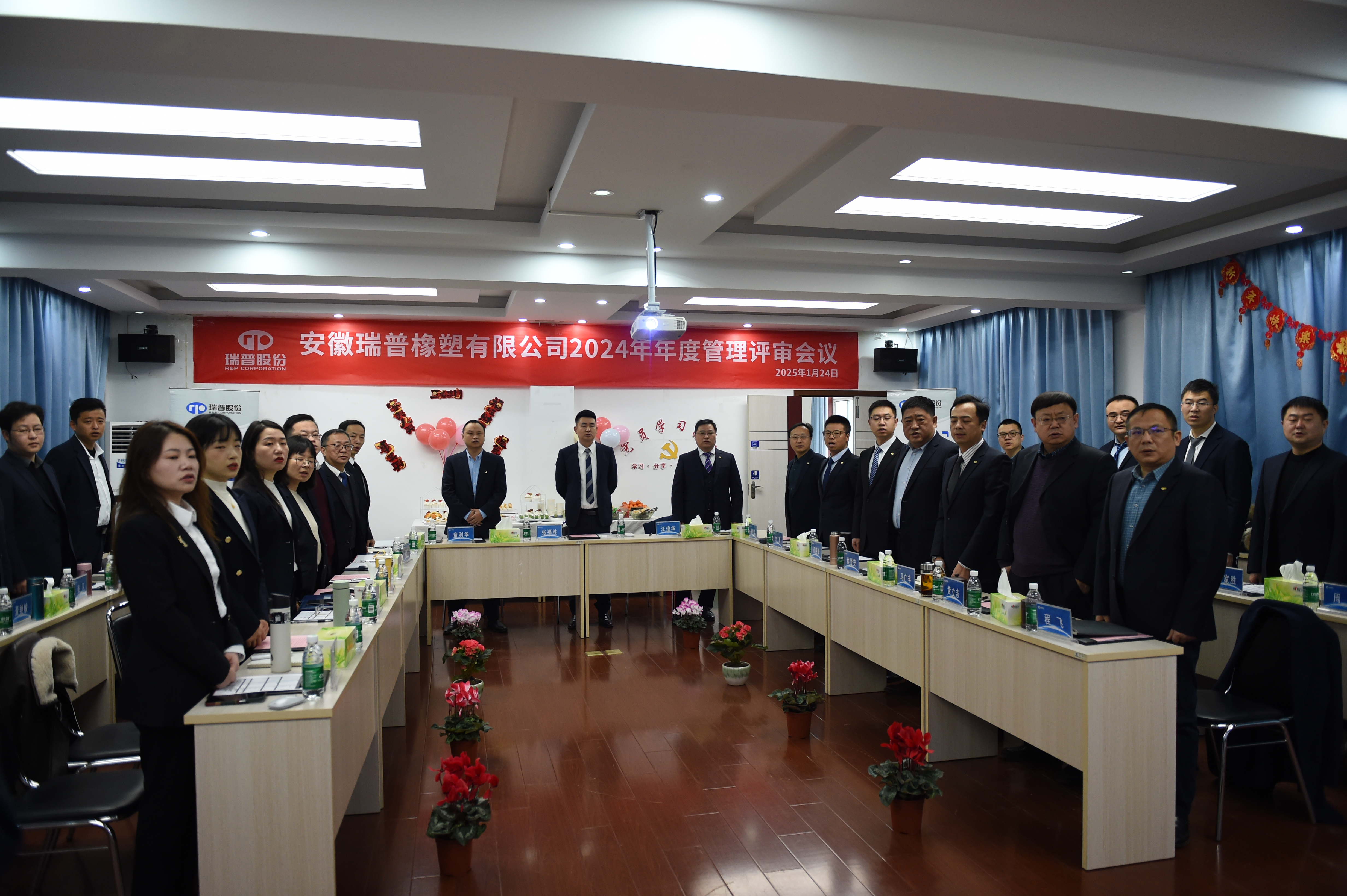 安徽瑞普橡塑有限公司于2025年1月24日上午8時,在寧國公司三樓會議室舉行2024年度管理評審會議。本次會議由集團公司質量部長祝珊珊擔任主持,公司高層管理人員以及各職能部門、子公司負責人共計三十余人出席會議。各職能部門、子公司負責人就2024年度的工作情況進行匯報,并對2025年的工作計劃及提升策略進行規劃。